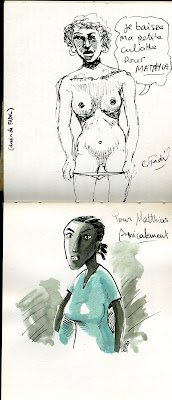 Souvenirs du festival Bulles d'encre à Conakry ce début février merci à Oscar, Zohoré, Fadil, Tounkara, Tonapka et Odia dont des dessins apparaissent dans le désordre.
